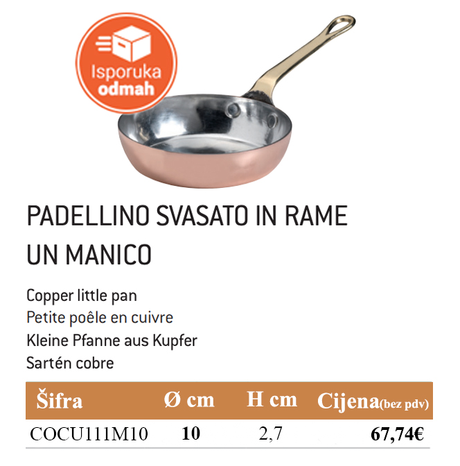 Rame liscio manicato ottone fuso 2 mm in stile francese / Flat copper with brass handle